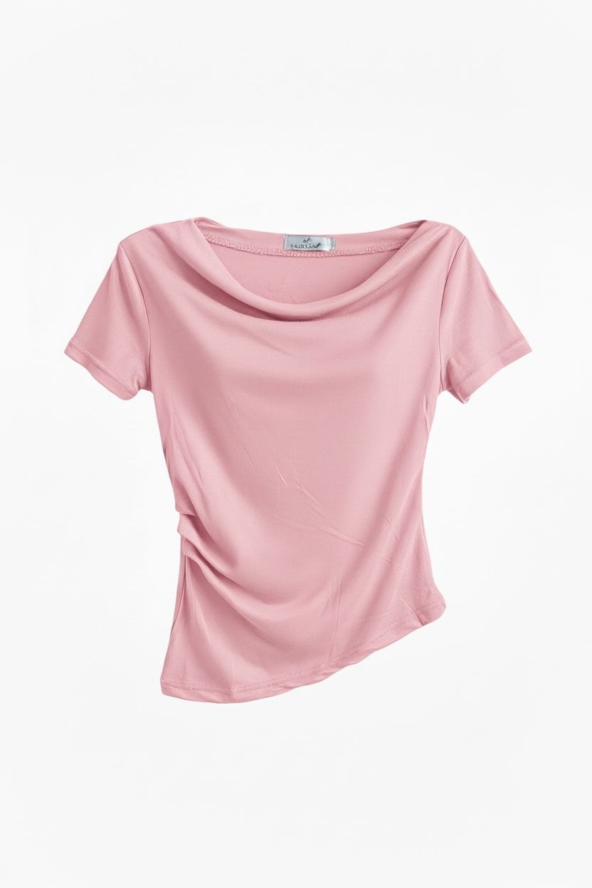 Camiseta Asimétrica Hombro Rosa
